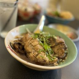Pretty good food for takeout, we got the Gui Chai Tod (5/5 favorite dish of the night), Pad See Ew (2/5 a bit too saucy for me), Pad Thai (2/5 a bit dry), Khao Moo dang (4/5 pretty tasty), and Kra Duk Moo Nam Dang (4/5 good ribs especially with rice). Overall I'd have to try this place again in person and not through takeout since hot food and plates make a big difference!